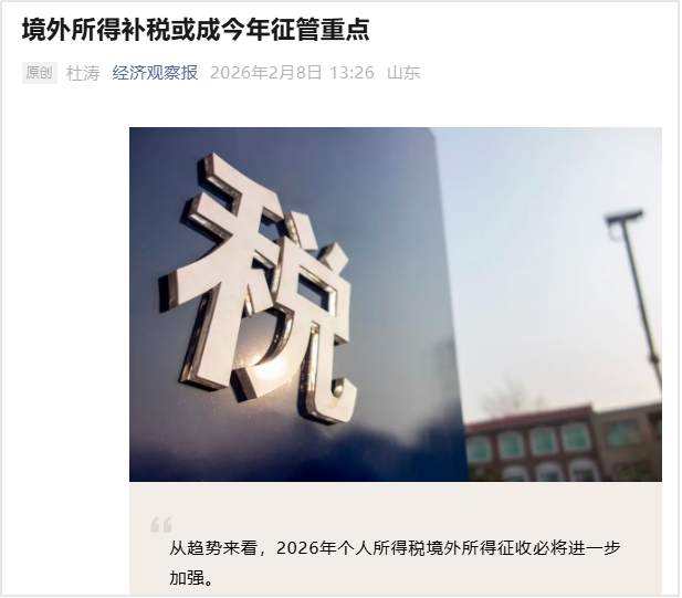 2月8日,有媒体报道,今年境外所得补税,或许要成征管重点,引发广泛关注。