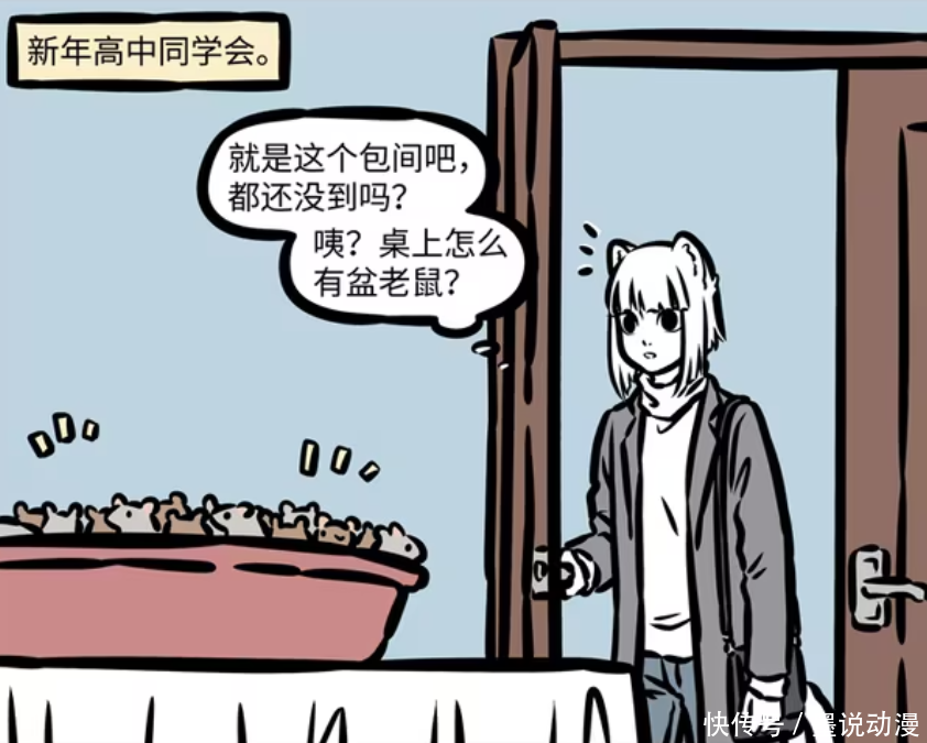 九月误以为是有人提前给她点的菜,知道她喜欢吃老鼠。这些老鼠明显看起来很肥美,九月那是相当期待吃下它们之后的口感。不过九月的同学们有一部分可是人类,怎么可能点老鼠当作食物,这其中肯定有蹊跷。