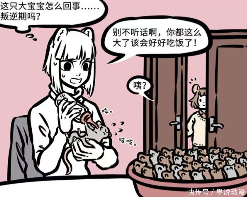 不过九月发现其中一个老鼠看起来体型较大,也是这些老鼠里面最大的一只。九月还疑惑,为何皓紫有这么大的孩子?还一度怀疑是这些老鼠们的老大。因为听不懂老鼠在说什么,所以九月只能继续喂奶。