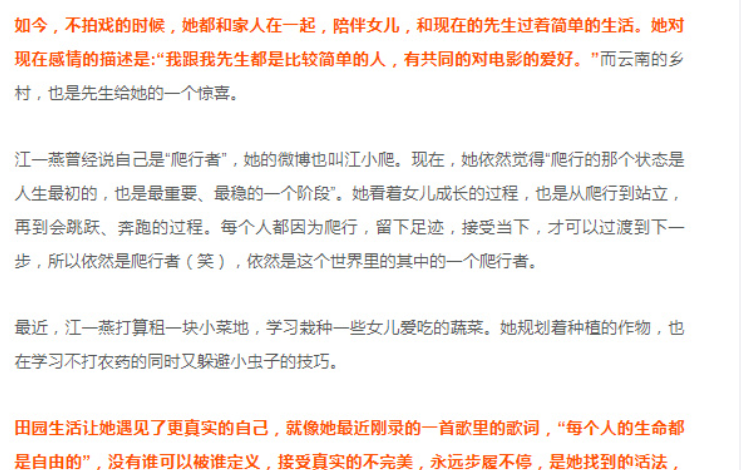 因为长期生活在大理,慢慢有了“江一燕隐居”的传闻,她解释,自己只是选择在更喜欢的地方生活,虽然工作量不如前些年,但依旧在工作,区别是以前收工飞回北京,现在收工飞到大理。