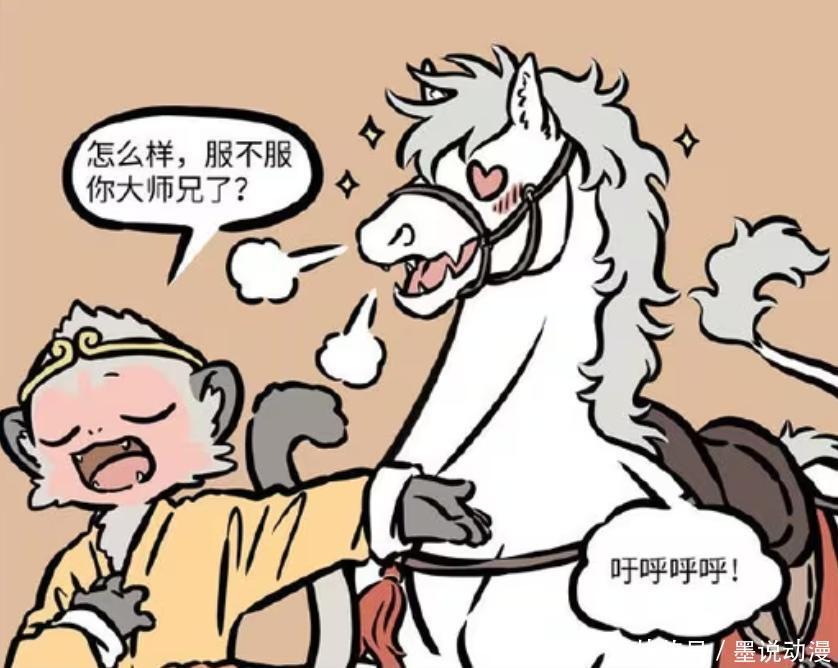 在遇到唐僧之后,孙悟空从五指山中脱困,跟着唐僧前往西天取经。这时候的孙悟空,是以猴子的形象为主,还穿着虎皮裙。不过《非人哉》漫画中的西游时期,孙悟空明显看起来更加可爱,甚至还有敖烈为何这么喜欢大师兄的故事也有展开。